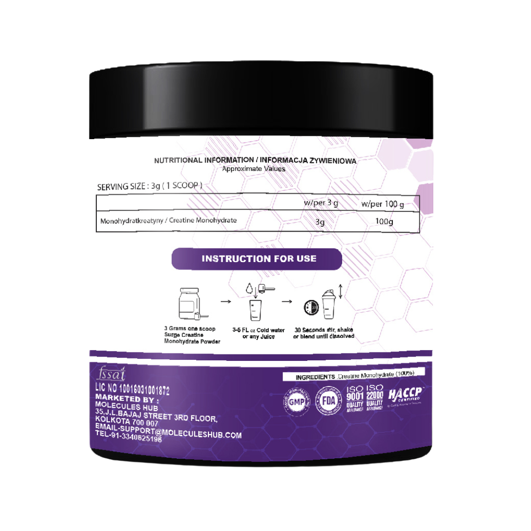 Nutra Surge Creatine Monohydrate contains no additives or preservatives.