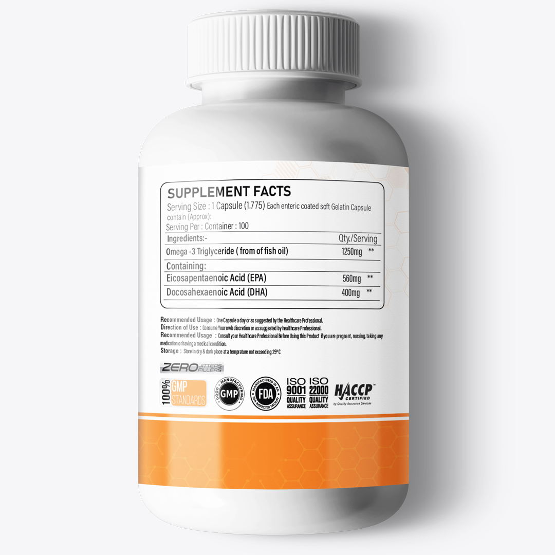 Total Omega-3 fatty acids support the heart, eye, brain and joint health.
